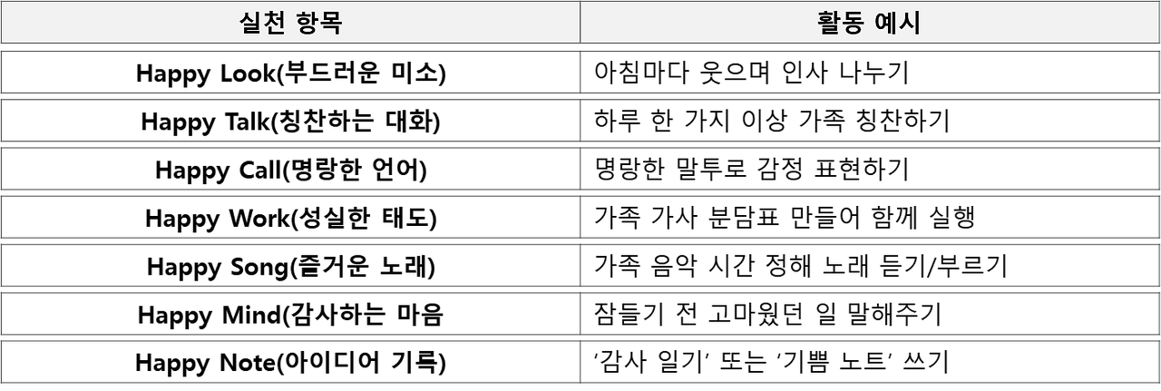 7가지 행복 습관을 가족 모두가 함께 실천한다면, 그 어떤 환경 속에서도 우리는 따뜻한 울타리 안에서 웃음을 지을 수 있습니다.