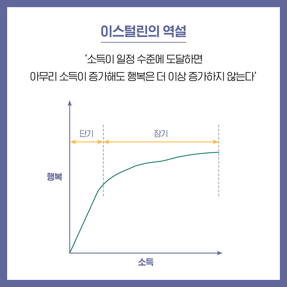 기본적인 생존 욕구(식량, 주거, 의료)가 충족된 후에는 소득 증가가 행복에 미치는 영향이 미미해진다.